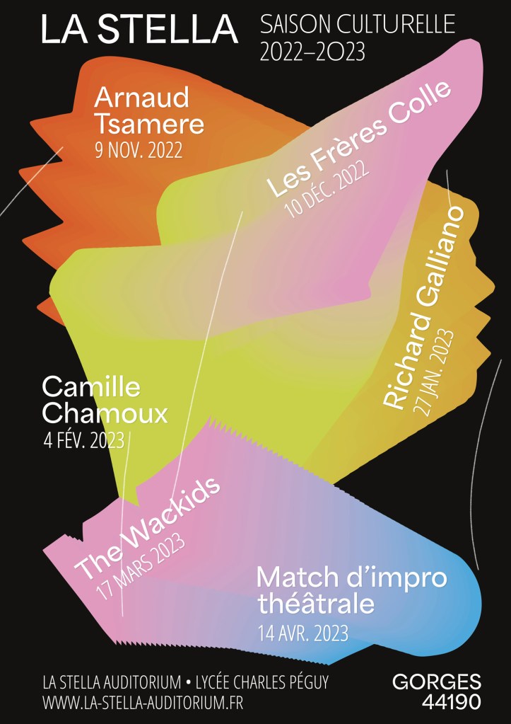 Réalisation des affiches des saisons culturelles de la salle de spectacle la Stella à Gorges.